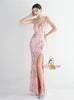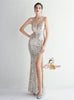 Spaghetti Straps Mermaid Sequins Split Prom Dress
