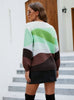 Splicing Leisure Round Neck Green Long-sleeved Sweater