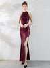 Split Long Sequined Evening Dress