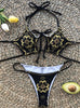 Strap Tether Hollow Print Two Piece Bikini
