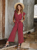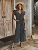 Striped Lotus Leaf Sleeve Casual Pants Jumpsuit