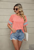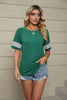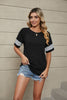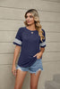 Striped Stitching Loose Round Neck Short Sleeve T-shirt