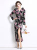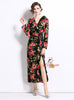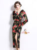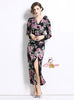 Three-dimensional Flower Split Slim Print Dress