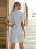 Twisted Striped Bat Sleeve Irregular Shirt Dress