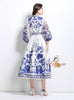 V-neck Gauze Lantern Sleeve Printed Dress