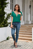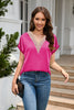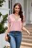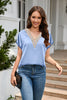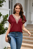 V-neck Lace Satin Short Sleeve Shirt Top