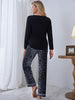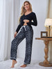 V-neck Long Sleeve Leopard Print Pajamas Suit