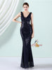 V-neck Mermaid Sequins Sleeveless Prom Dress