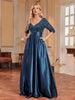 V-neck Satin Sequins Short Sleeve Prom Dress