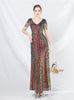 V-neck Sequins Cap Sleeve Beading Prom Dress