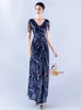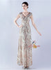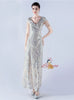 V-neck Sequins Cap Sleeve Beading Sequins Prom Dress