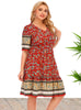 V-neck Short Sleeve Printed Dress