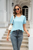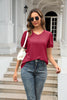 V-neck Spliced Hemmed Short Sleeve T-shirt