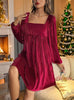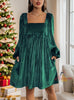 Velvet Square Ccollar Backless Long Sleeve Dress