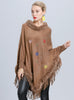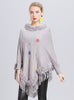 Warm Flower Embroidered Fringed Fur Collar Shawl