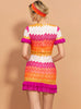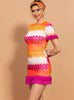 Wave Stripes Contrast Fashion Ruffled Short Sleeve Skirt