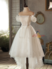White Hi Lo Tulle Off the Shoulder Bow Wedding Dress
