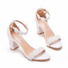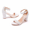 White Lace Thick Beaded Sandals Heels