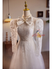 White Lace Tulle Long Sleeve High Neck Wedding Dress