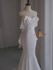 White Mermaid Bow Satin Wedding Dress