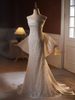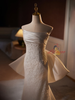 White Mermaid Lace Satin Strapless Bow Wedding Dress