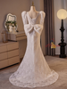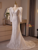White Mermaid Lace V-neck Long Sleeve Wedding Dress