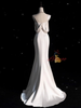 White Mermaid Satin One Shoulder Pleats Wedding Dress