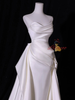 White Mermaid Satin Pleats Strapless Wedding Dress