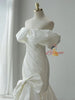 White Mermaid Satin Pleats Wedding Dress With Bow