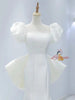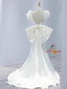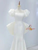 White Mermaid Satin Puff Sleeve Backless Wedding Dress