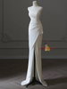 White Mermaid Strapless Pleats Split Wedding Dress
