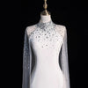 White Mermaid Tulle High Neck Crystal Wedding Dress