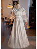 White Satin Lace Long Sleeve High Neck Wedding Dress
