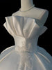 White Satin Strapless Appliques Wedding Dress