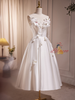 White Satin Straps Beading Flower Wedding Dress