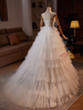 White Tulle Spaghetti Straps Tiers Beading Wedding Dress