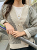Winter Striped V-Neck Cardigans Buttons Oversize