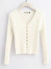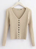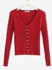 Woman Deep V-neck Long Sleeve Pearl Cardigan Sweater