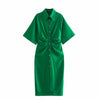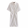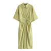 Women Chic Fashion Button-up Draped Midi Shirt Dress