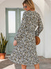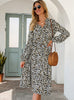 Women High Waist Long Sleeve Leopard Midi Dress