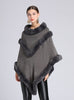 Women Rabbit Fur Collar Shawl Cloak Coat