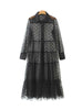 Women Stylish Polka Dot Patchwork Transparent Midi Shirt Dress