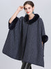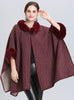 Wool Collar Striped Knit Cloak Shawl