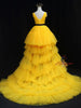 Yellow Tulle Hi Lo Pleats Prom Dress