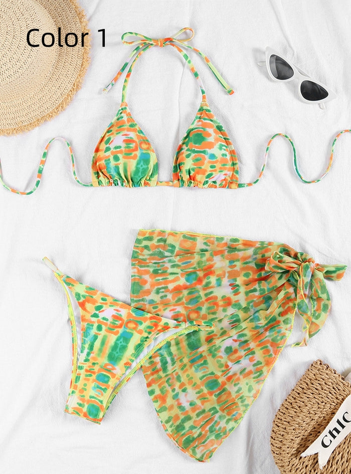 Ruminating on the perfect blend of style and comfort, this vibrant bikini set is designed to make you shine at any beach or poolside. The playful print features a mix of bright and bold colors, creating a dynamic and eye-catching look. The triangle top offers adjustable straps for a secure and personalized fit, ensuring both comfort and support. The high-waisted bottoms are designed to flatter your figure, with a stylish wrap skirt overlay that adds a touch of sophistication. Constructed from high-quality, quick-drying fabric, this bikini set promises durability and a soft, comfortable feel. The vibrant design and bold colors make it a versatile piece that can be easily accessorized for different summer looks. Ideal for those who love to combine elegance with a hint of playfulness, this bikini set is perfect for all summer activities. Pair it with chic sunglasses and a stylish beach bag for a complete summer outfit. Enjoy the perfect blend of style and comfort with this stunning bikini set.