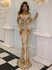 Long Off the Shoulder Sequined Long Sleeve Dress