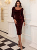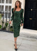 Sequin Slim Lantern Sleeve Fishtail Dress