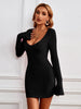 Sexy Single-breasted Knitted Long-sleeved Dress