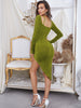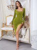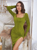 Sexy Slit Long Sleeve Silm Waist Dress