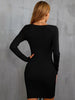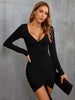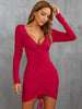 Sexy V-neck Drawstring Long Sleeve Dress